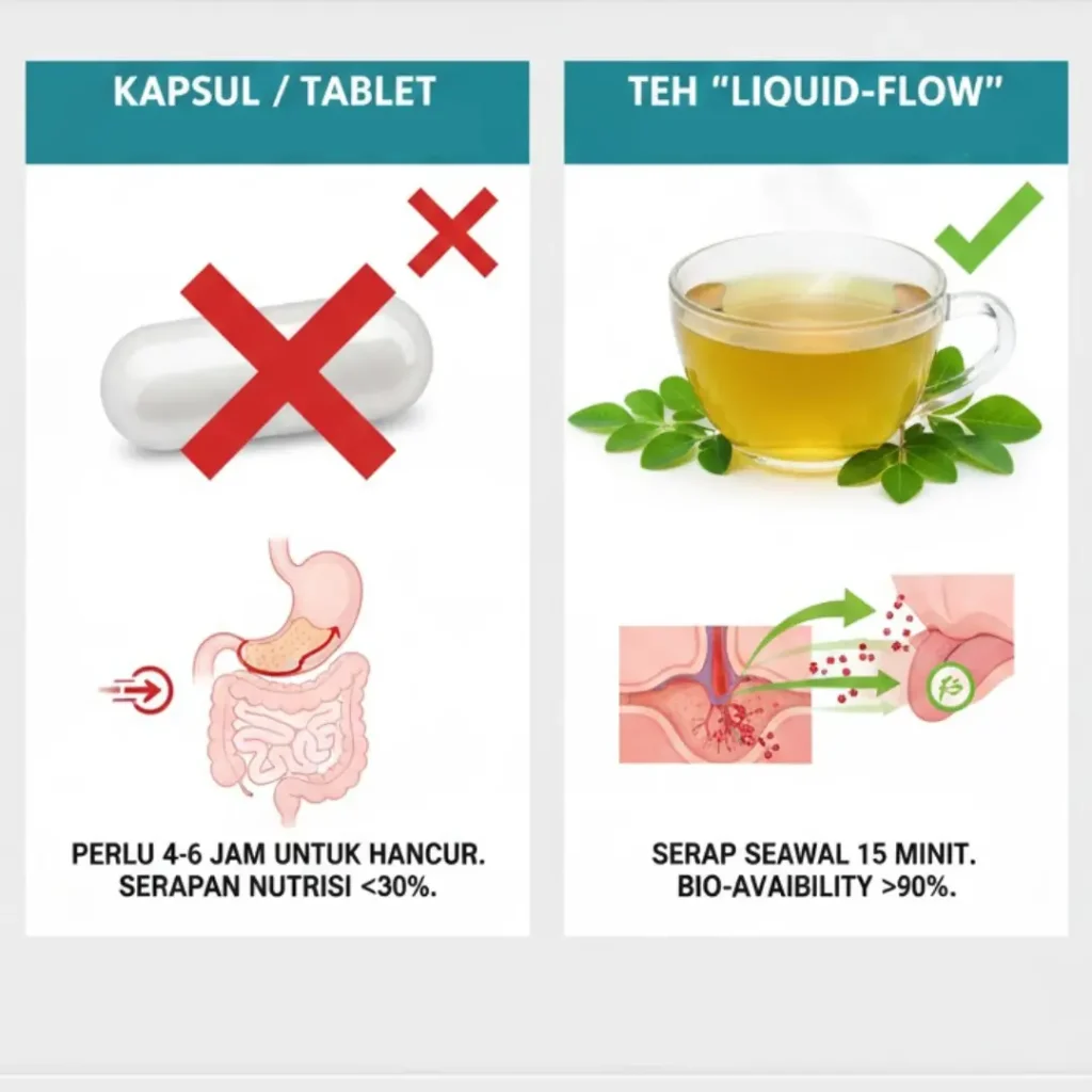 Nature Made Moringa Pegaga bukan ubat kimia. Ia adalah “Superfood Tea” berasaskan 100% daun herba asli (Moringa & Pegaga) yang dikeringkan. Ia bertindak sebagai makanan tambahan untuk menyokong sistem “servis” dalaman badan secara semulajadi